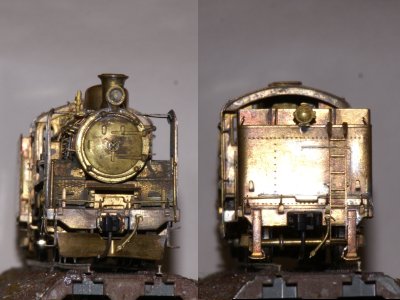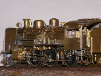 上の写真が加工された状態です。もともとかなりロストに変更されていたものを入手 したので、追加のロストは、シリンダー空気弁、発電機、バックプレートぐらいです。 そのほかにモーター変更、ボイラー延長、ヘッドライト点灯化、テンダー車輪変更、 ブレーキシュー、作用管、スノープロー追加などの加工を行いました。