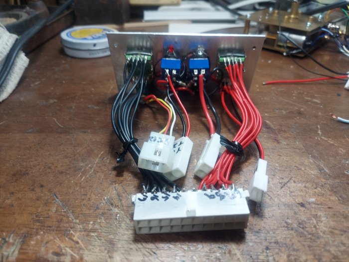 コントロールパネルです。給電用の大きなコネクターは古いパソコンの電源用を利用しています。